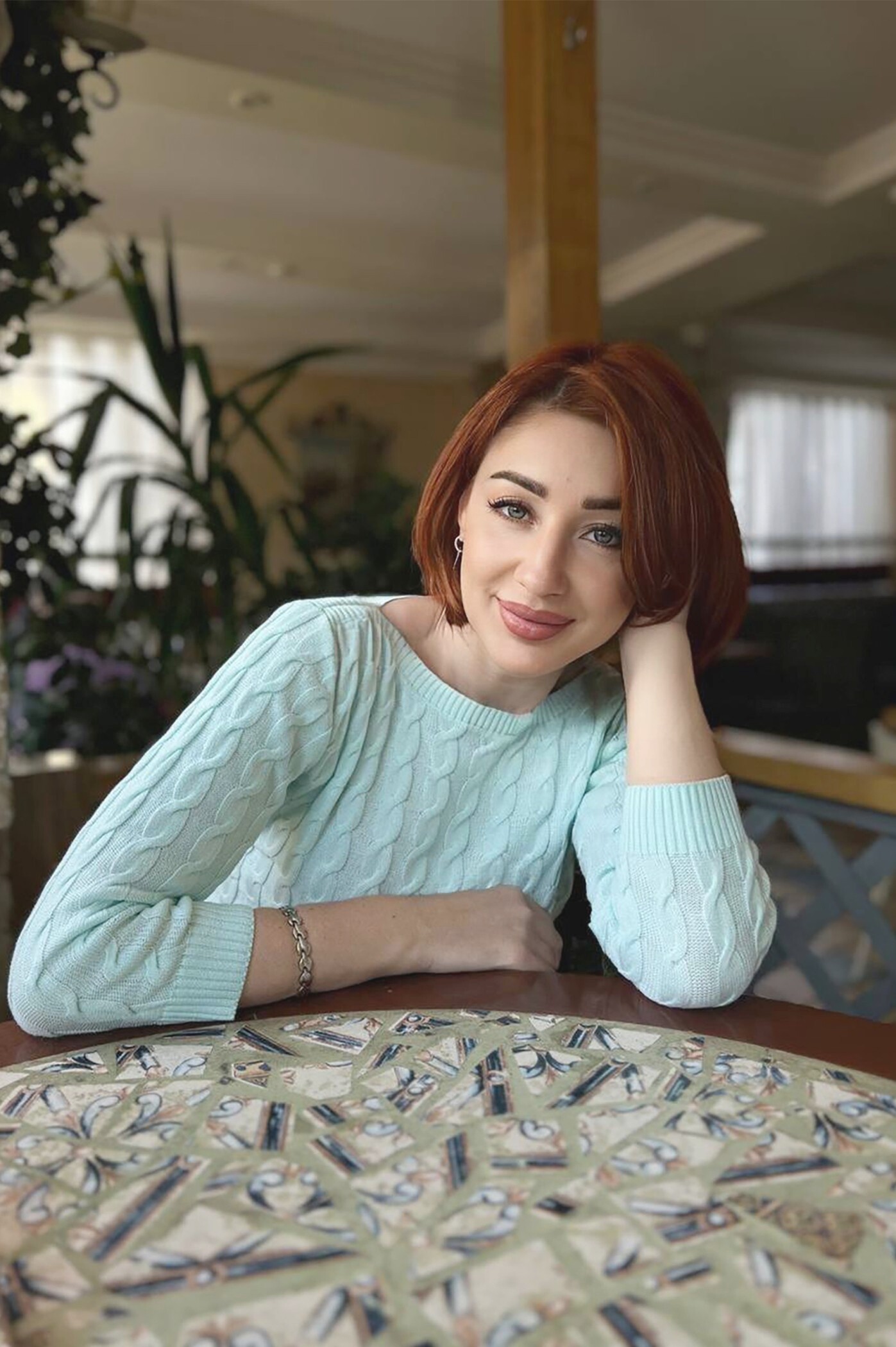 Hair color: auburn